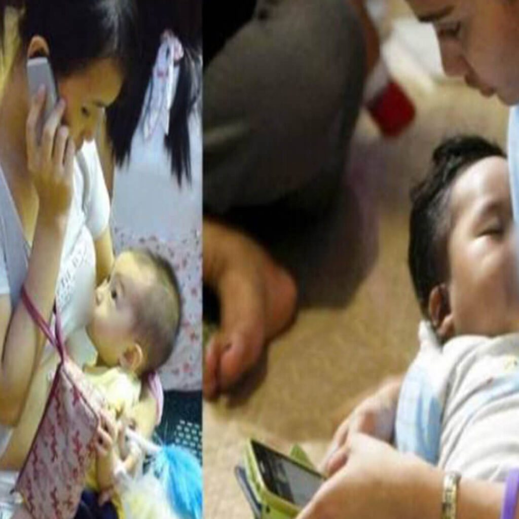 Sukar nak menyusukan anak-anak sambil pegang phone